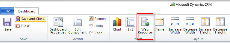 Now we need to add our HTML page to the web resource. Edit your dashboard and click on Insert ‘Web Resource’