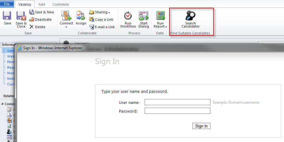 Now, when clicking on my ribbon button, the web resource is displayed as expected, without the login prompt.