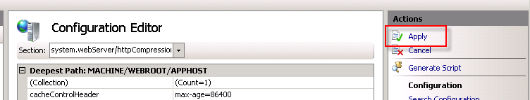 - In the Configuration Editor, in the Section: address box, type system.webServer/httpCompression, click dynamicTypes, and then in the value cell, click the ellipses . . .