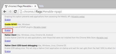 2. Click on ‘Enable’ under ‘Enable NPAPI’